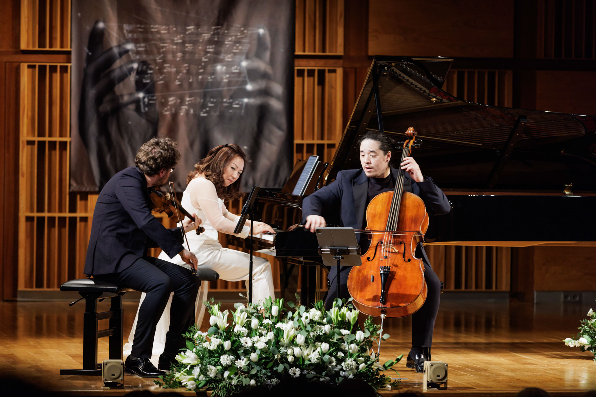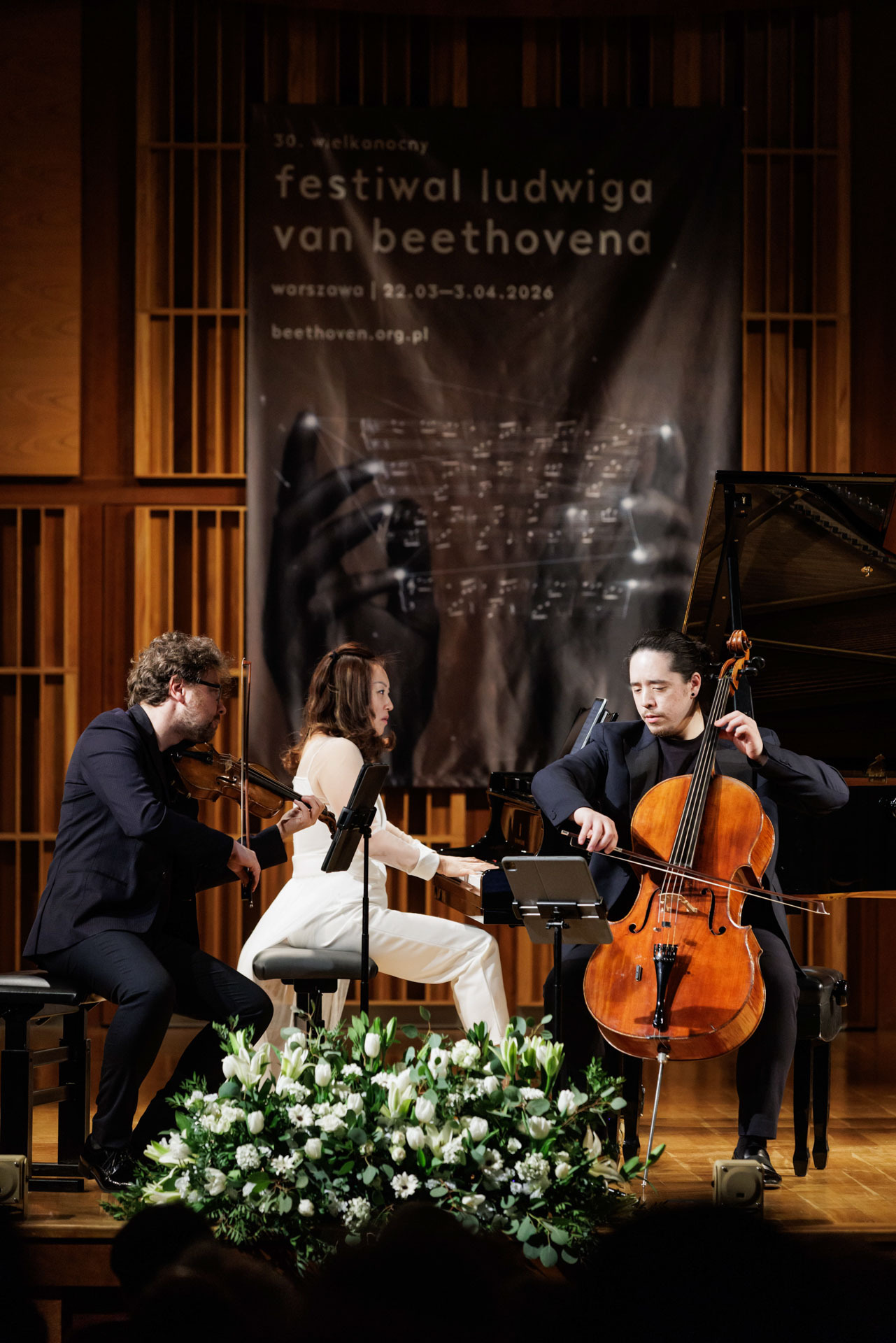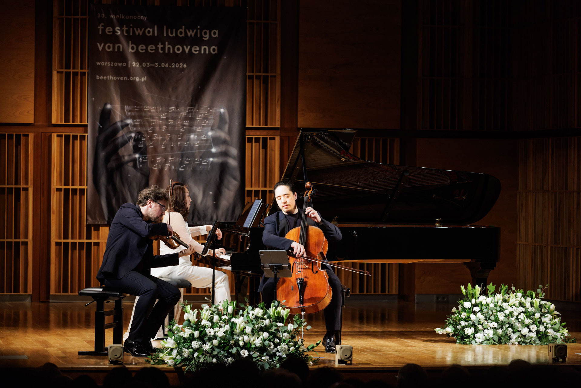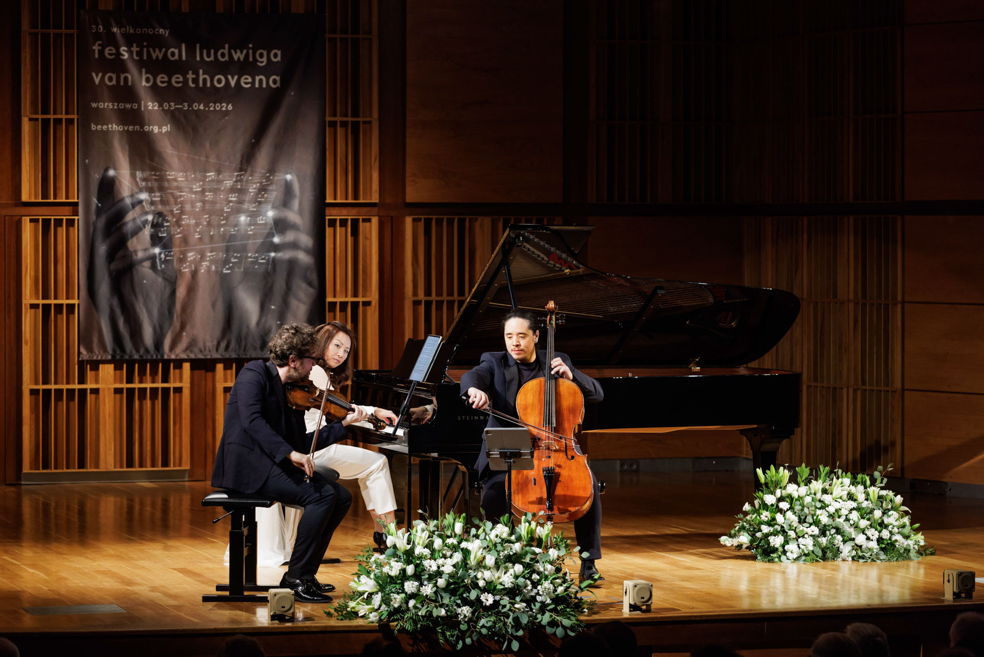 Środa w Filharmonii Narodowej upłynęła pod znakiem muzyki kameralnej w wykonaniu Sitkovetsky Trio – Alexander Sitkovetsky (skrzypce), Isang Enders (wiolonczela) oraz Wu Qian (fortepian).
