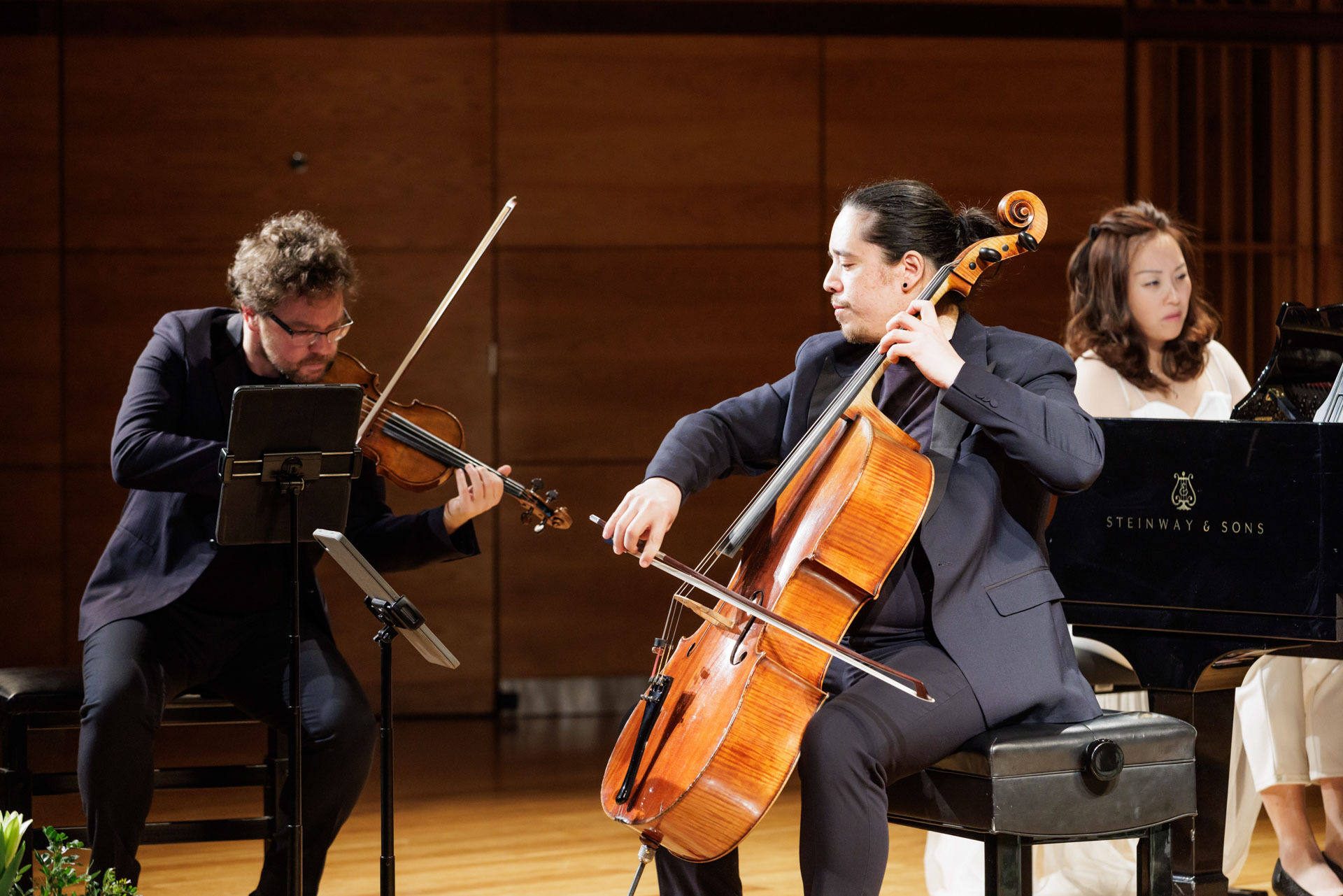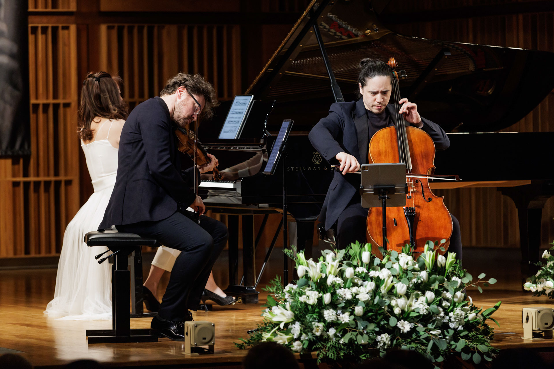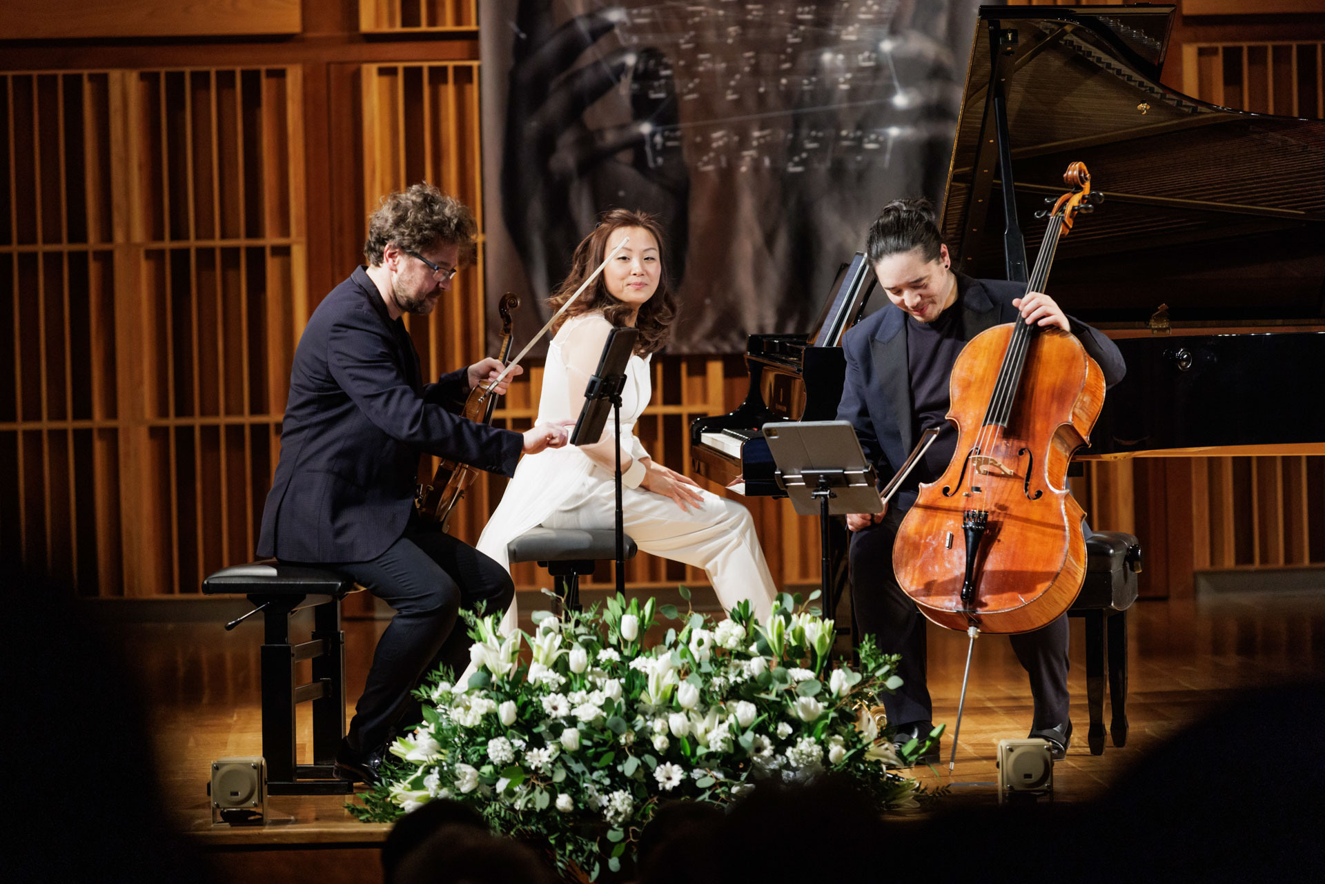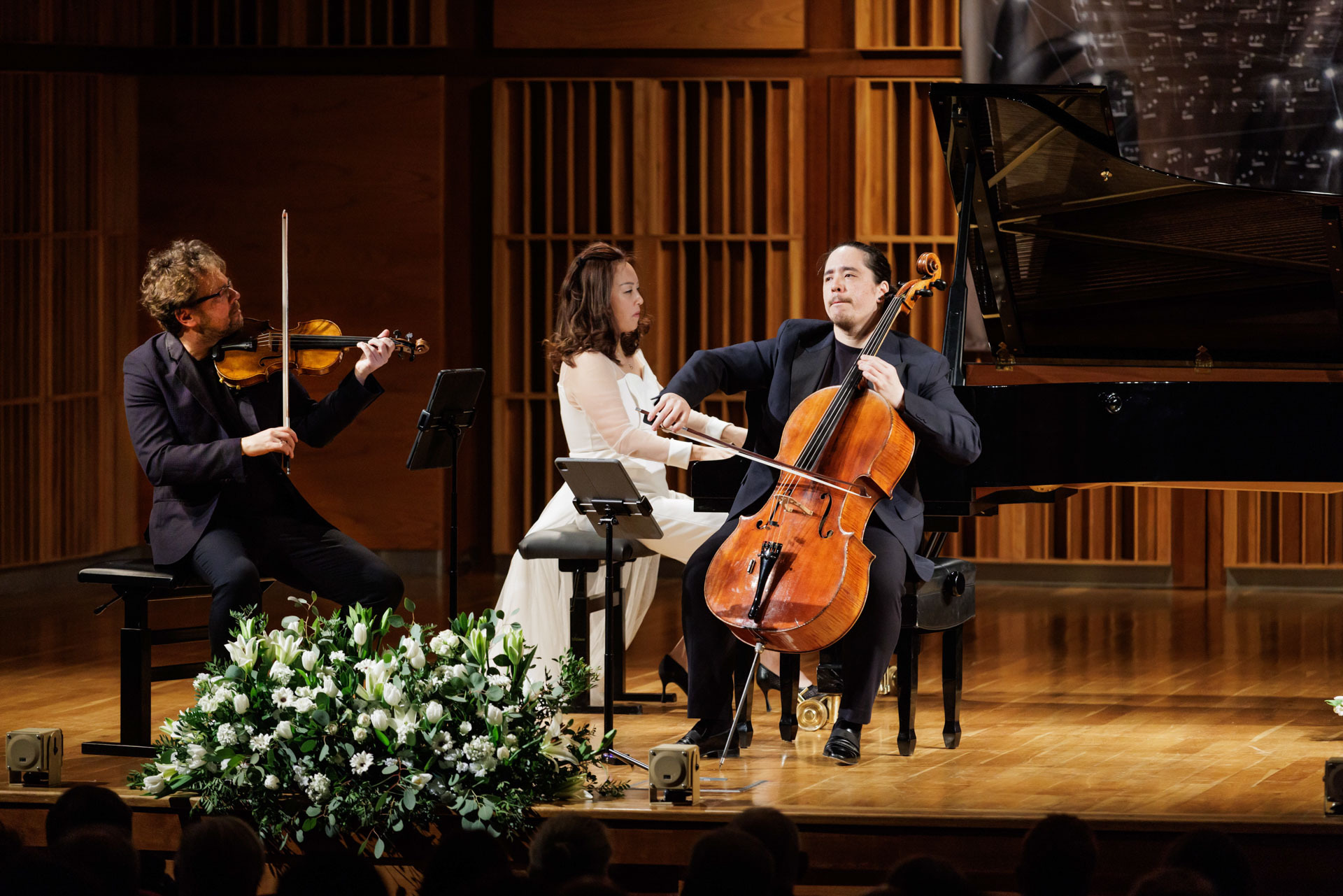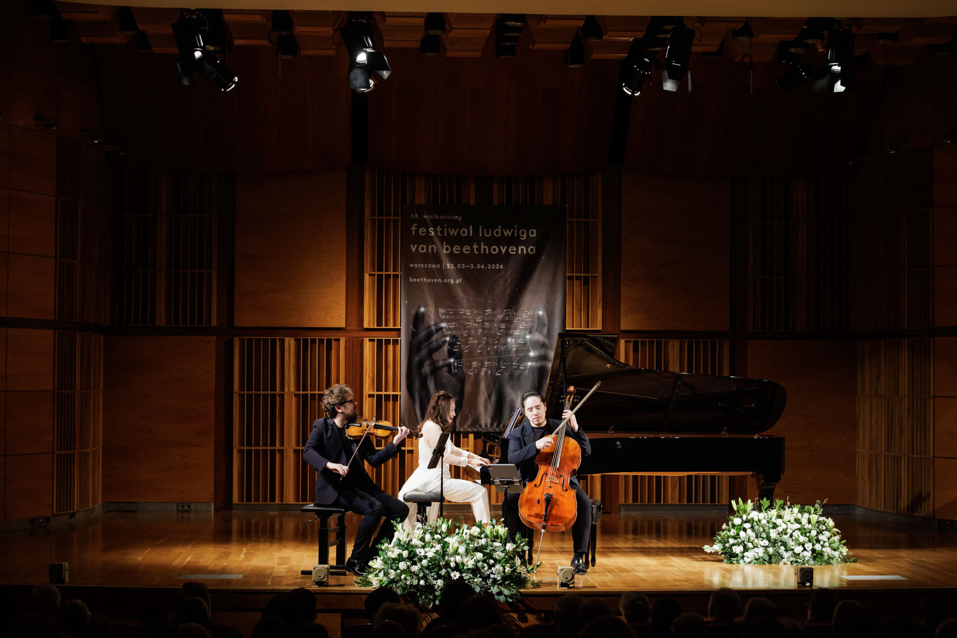 Środa w Filharmonii Narodowej upłynęła pod znakiem muzyki kameralnej w wykonaniu Sitkovetsky Trio – Alexander Sitkovetsky (skrzypce), Isang Enders (wiolonczela) oraz Wu Qian (fortepian).