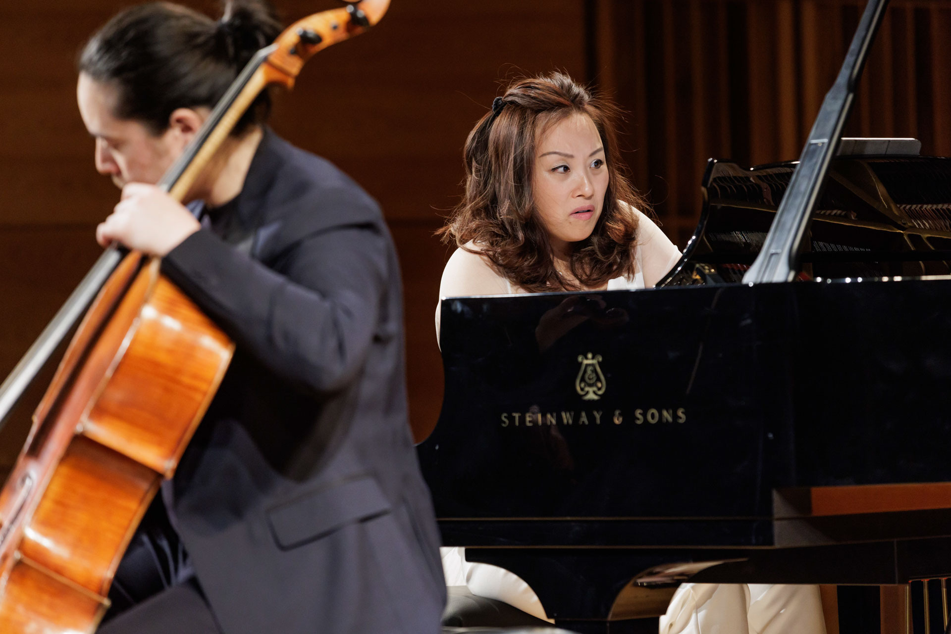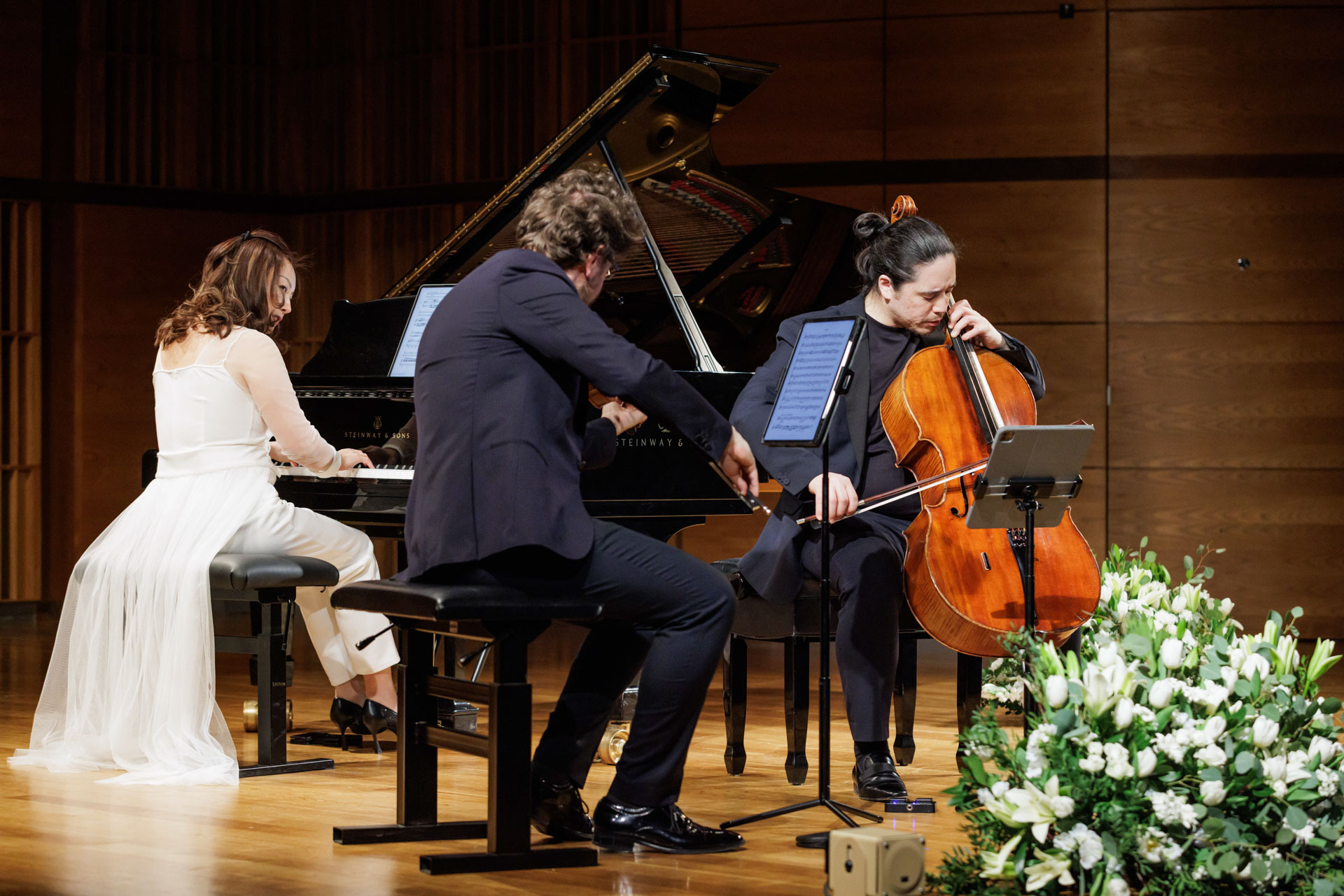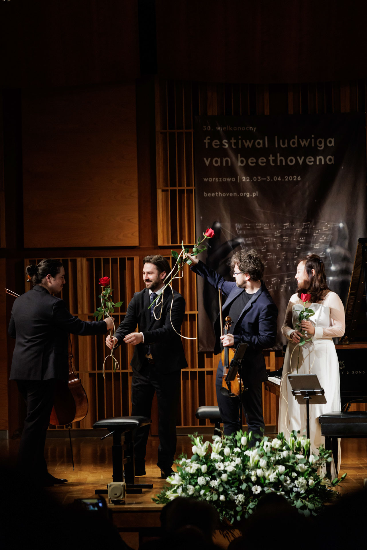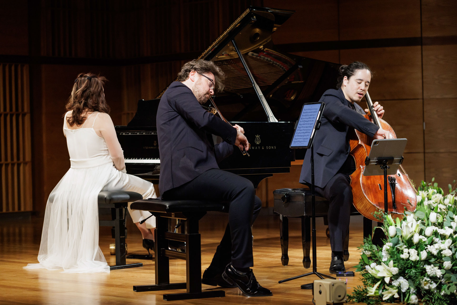 Środa w Filharmonii Narodowej upłynęła pod znakiem muzyki kameralnej w wykonaniu Sitkovetsky Trio – Alexander Sitkovetsky (skrzypce), Isang Enders (wiolonczela) oraz Wu Qian (fortepian).
