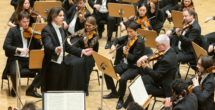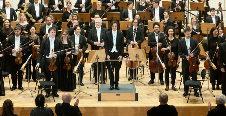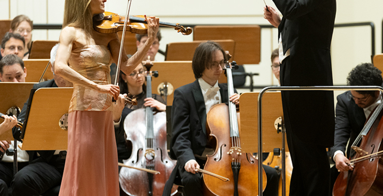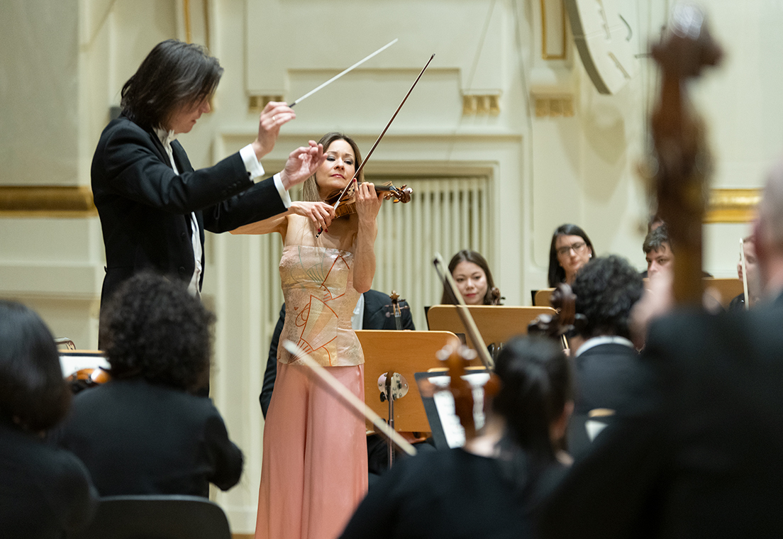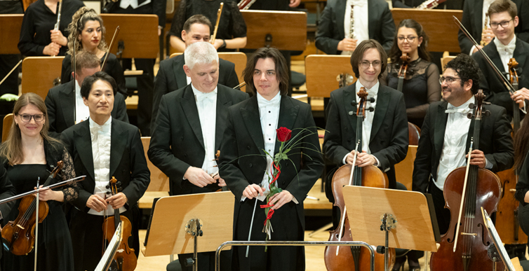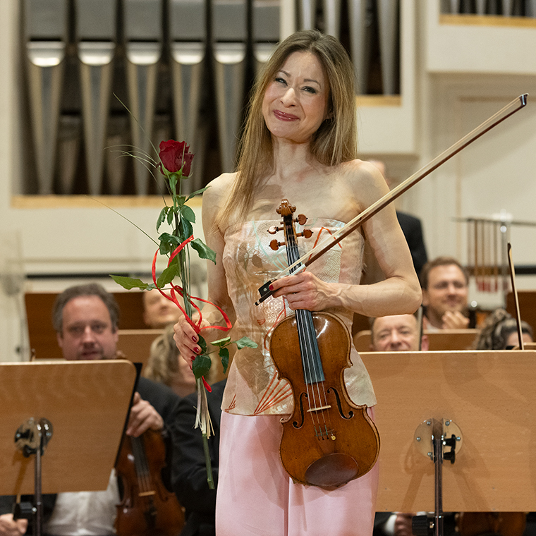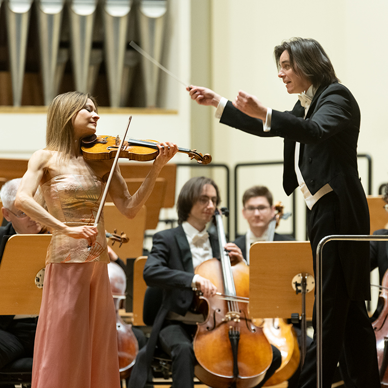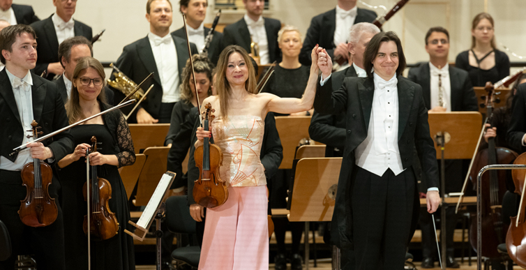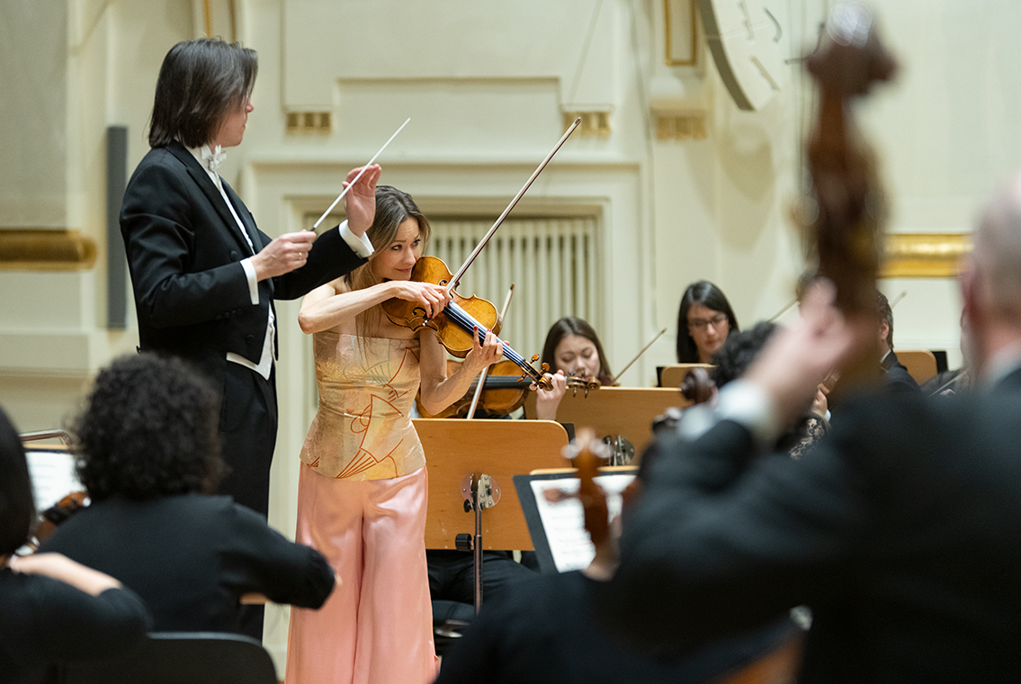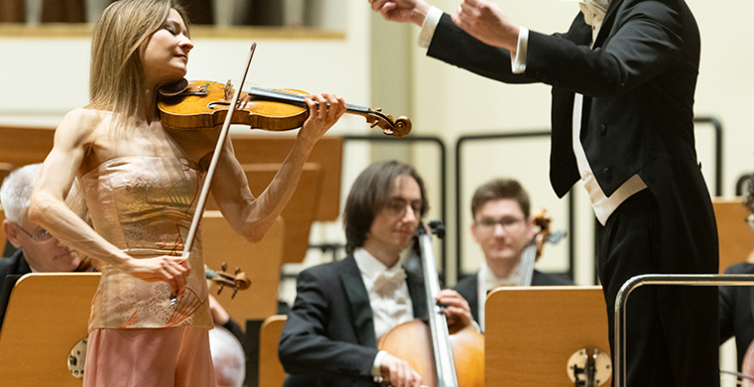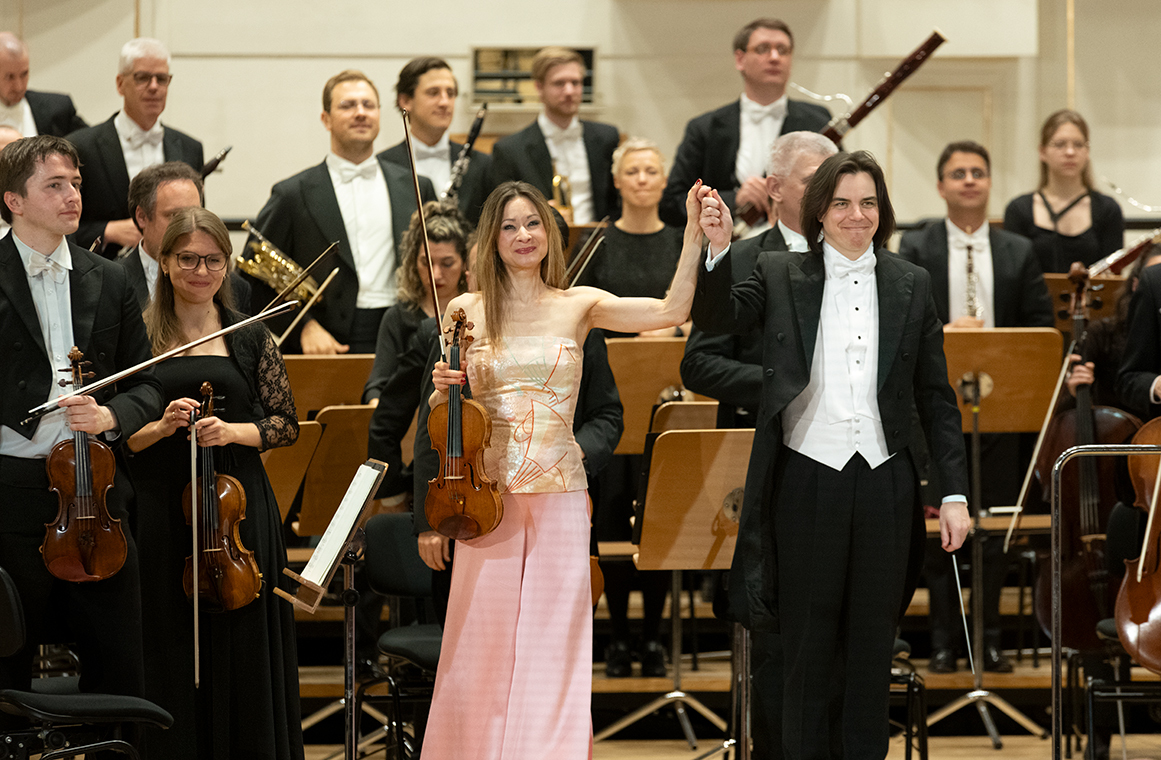 Na scenie Krakowskiej Filharmonii wystąpili wczoraj znakomici artyści: Arabella Steinbacher  (skrzypce), Sinfonieorchester Liechtenstein oraz Dawid Runtz (dyrygent).