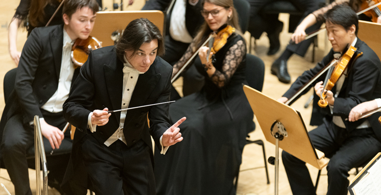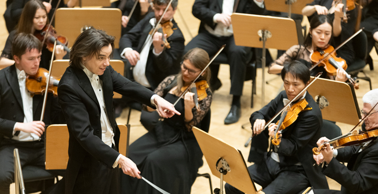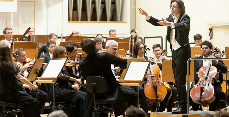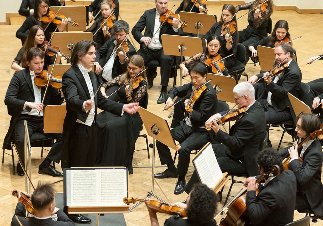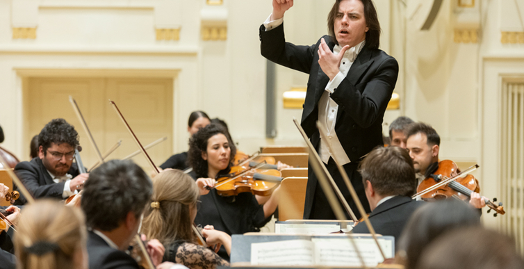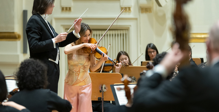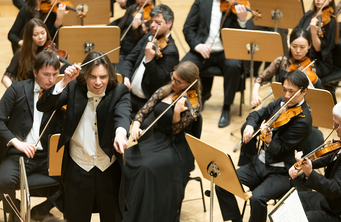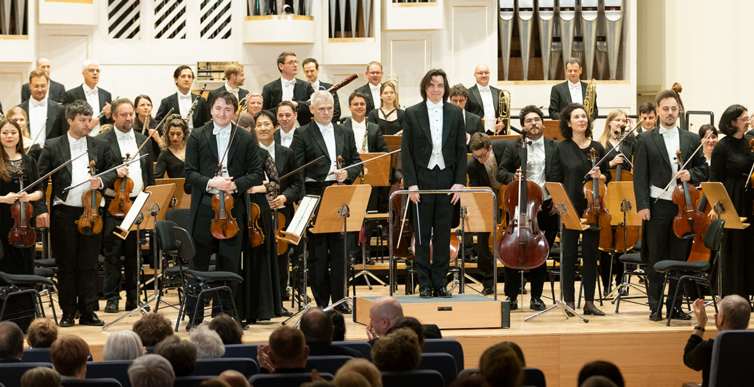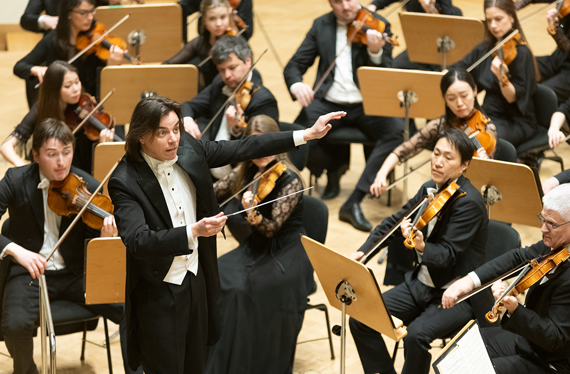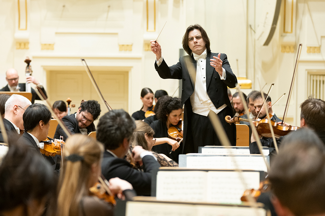 Na scenie Krakowskiej Filharmonii wystąpili wczoraj znakomici artyści: Arabella Steinbacher  (skrzypce), Sinfonieorchester Liechtenstein oraz Dawid Runtz (dyrygent).