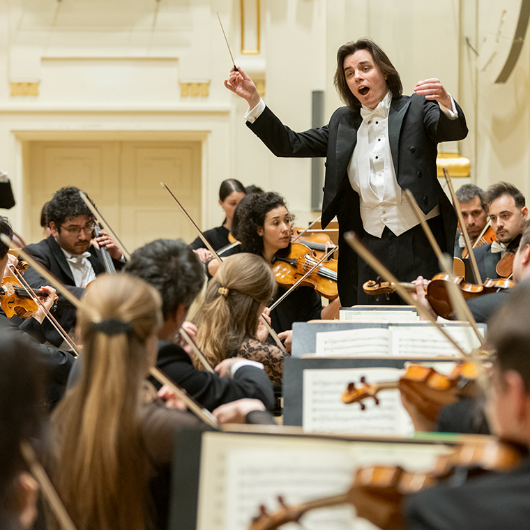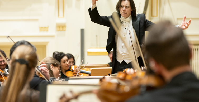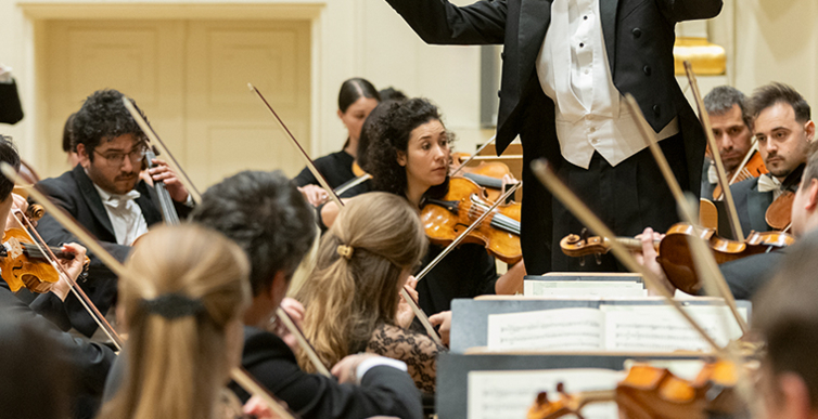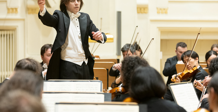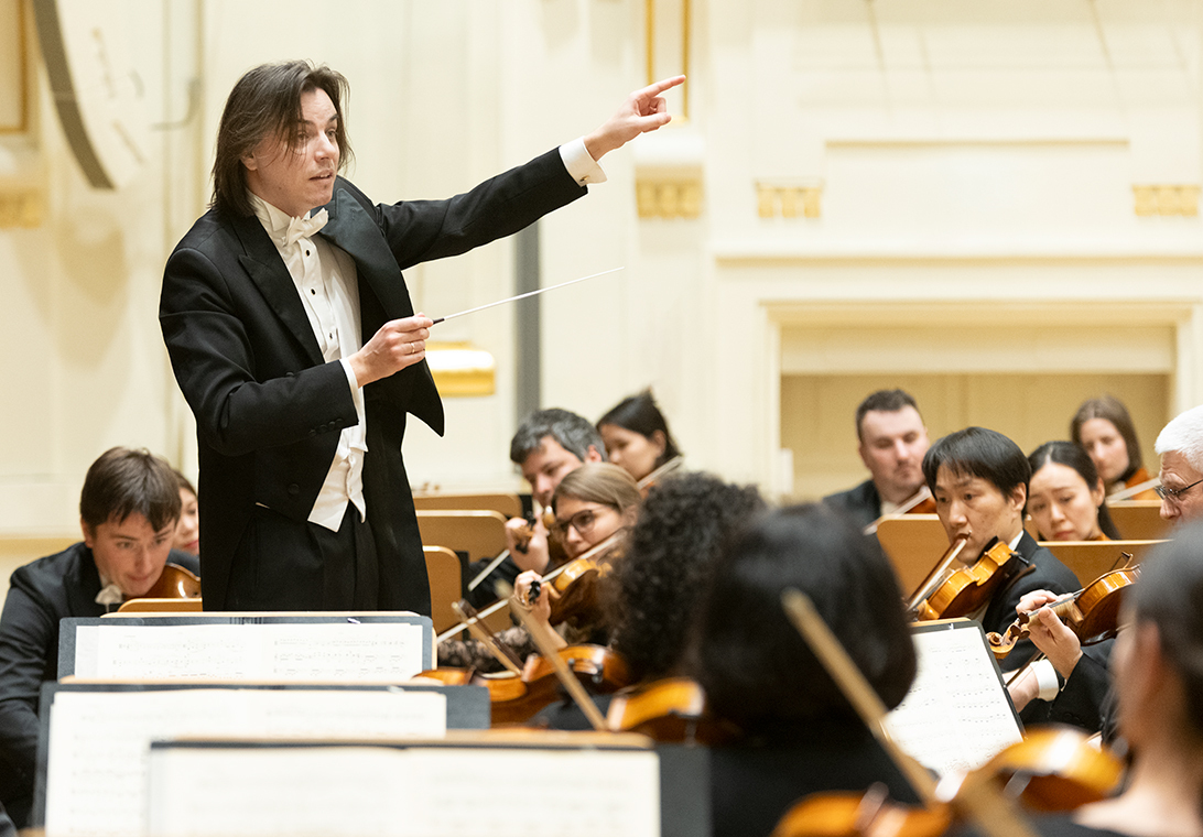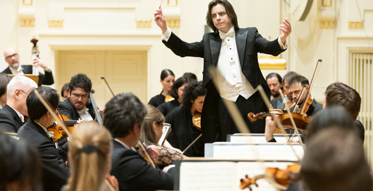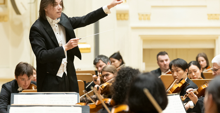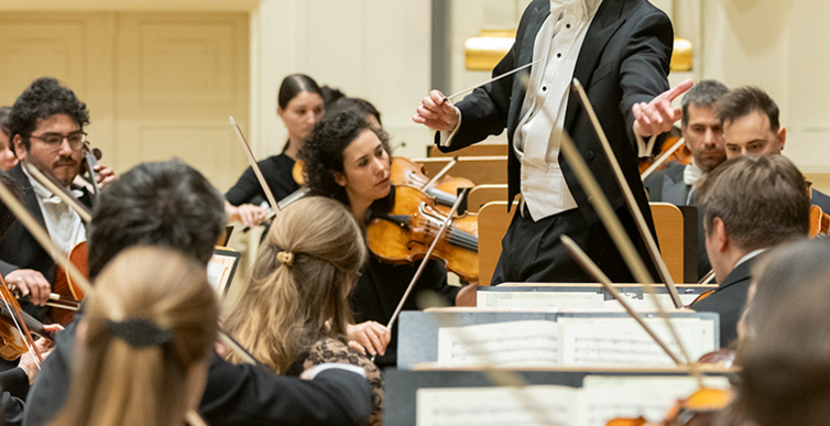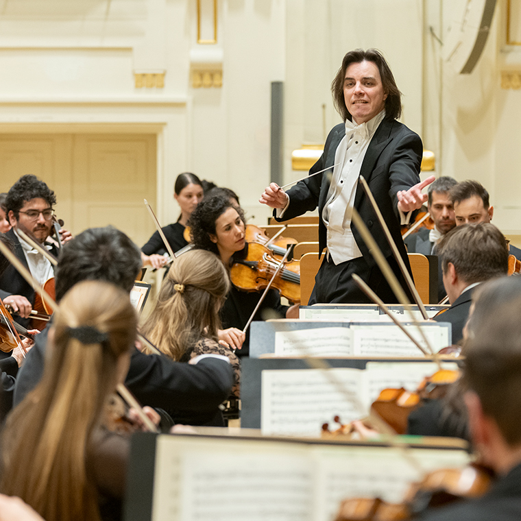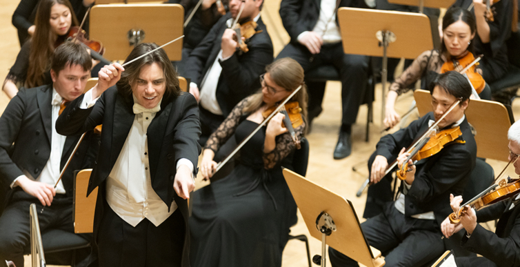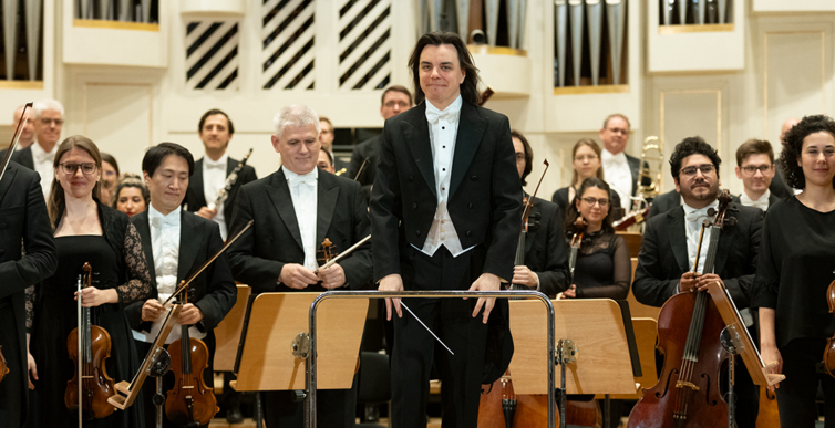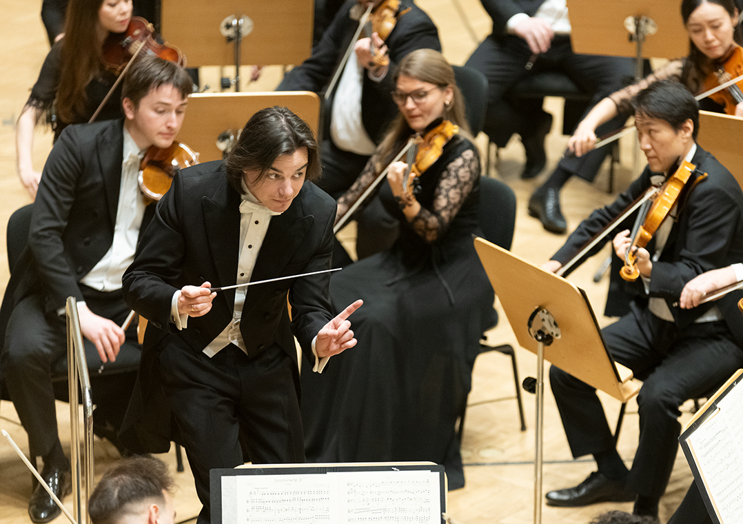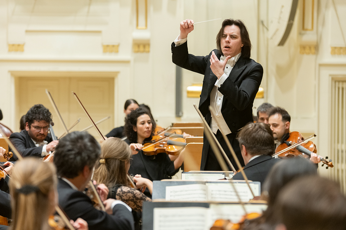 Na scenie Krakowskiej Filharmonii wystąpili wczoraj znakomici artyści: Arabella Steinbacher  (skrzypce), Sinfonieorchester Liechtenstein oraz Dawid Runtz (dyrygent).