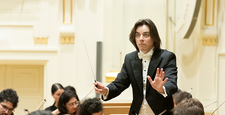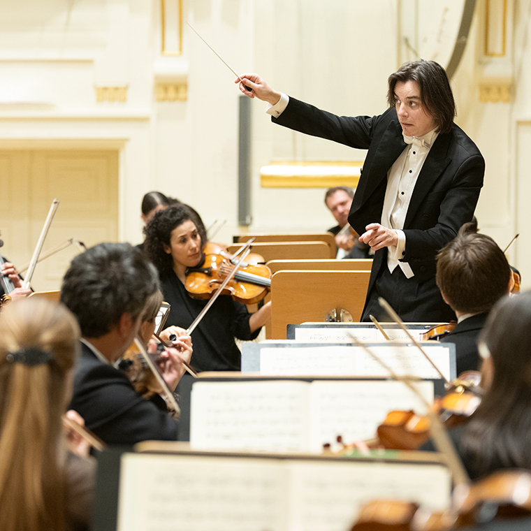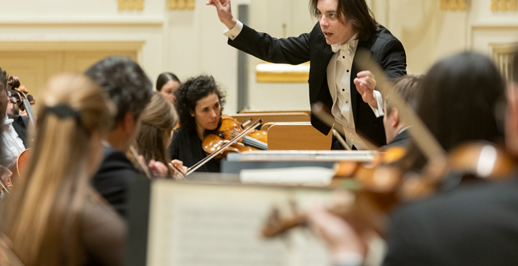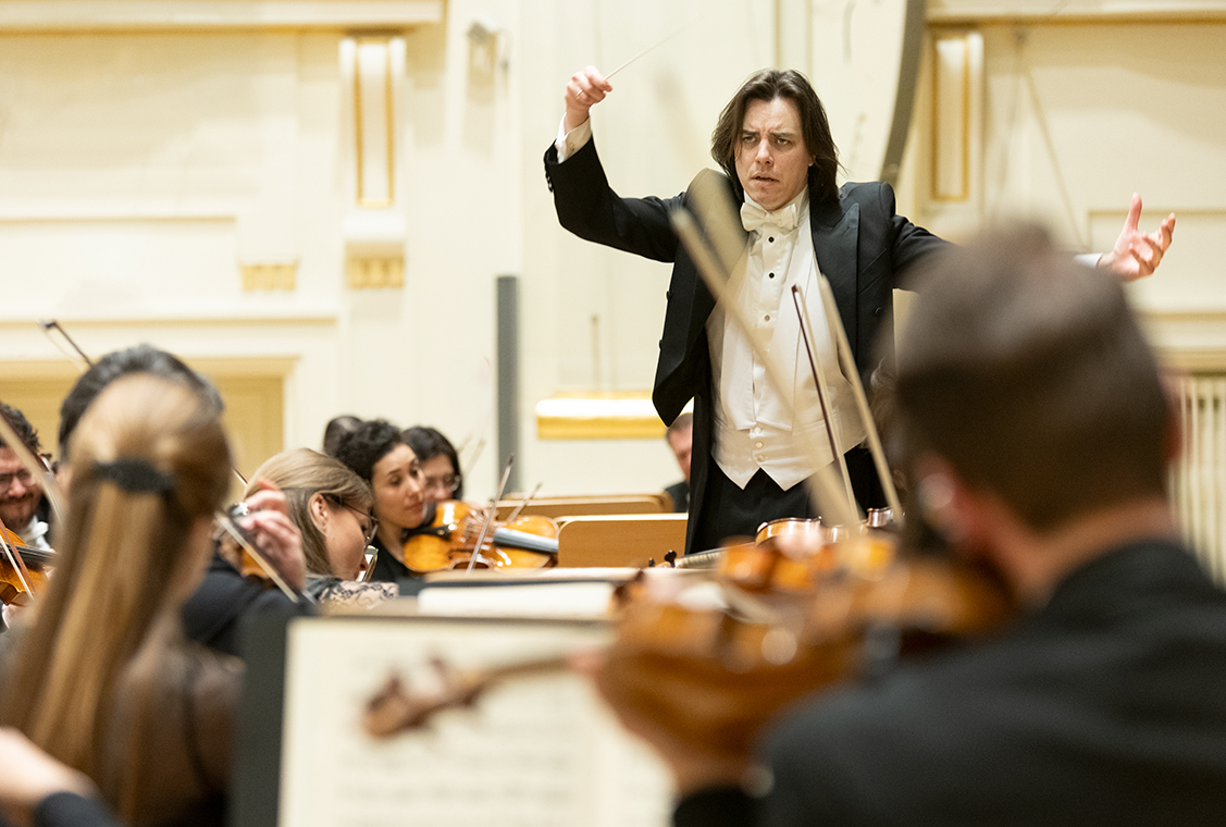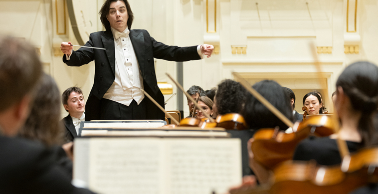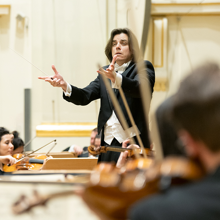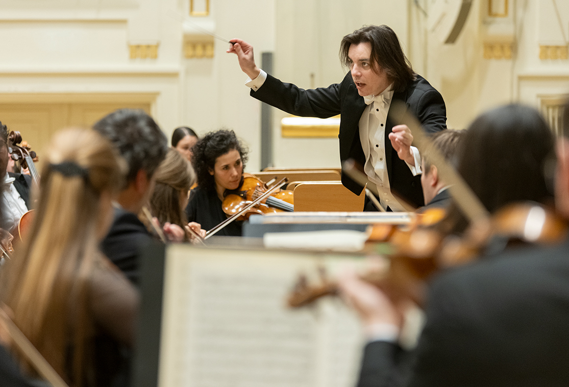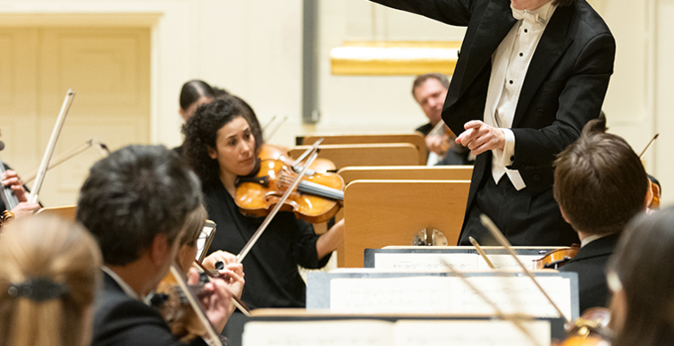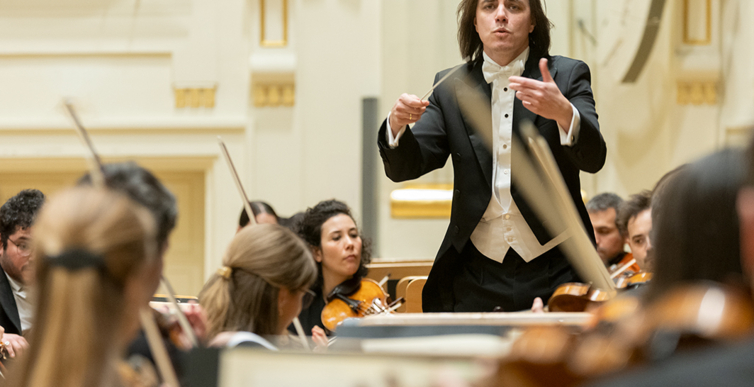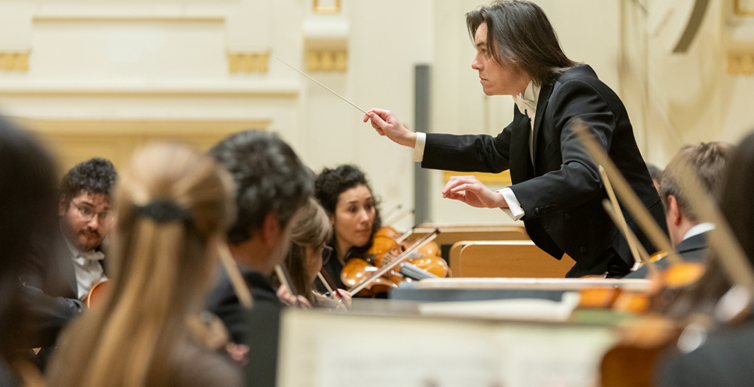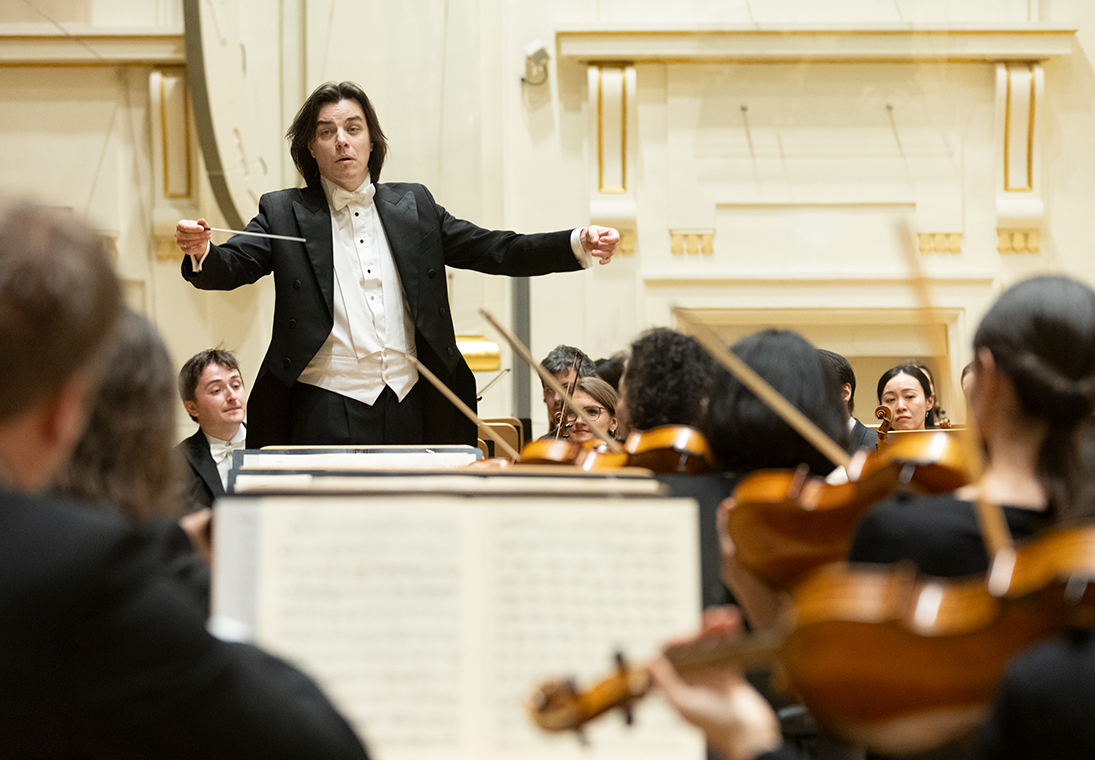 Na scenie Krakowskiej Filharmonii wystąpili wczoraj znakomici artyści: Arabella Steinbacher  (skrzypce), Sinfonieorchester Liechtenstein oraz Dawid Runtz (dyrygent).