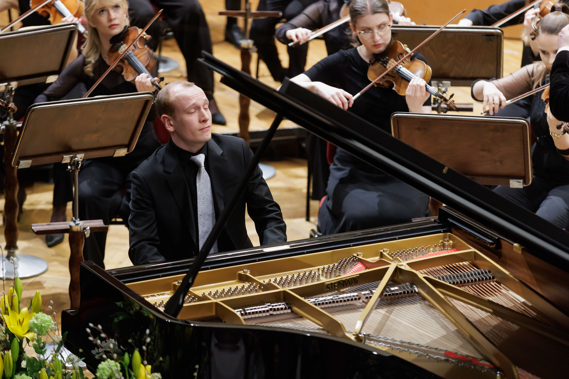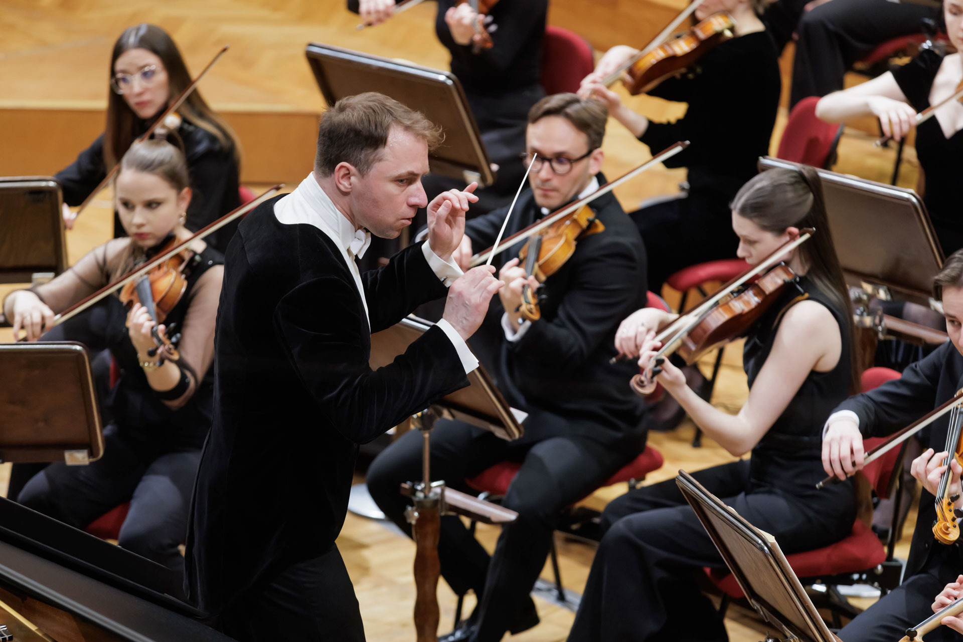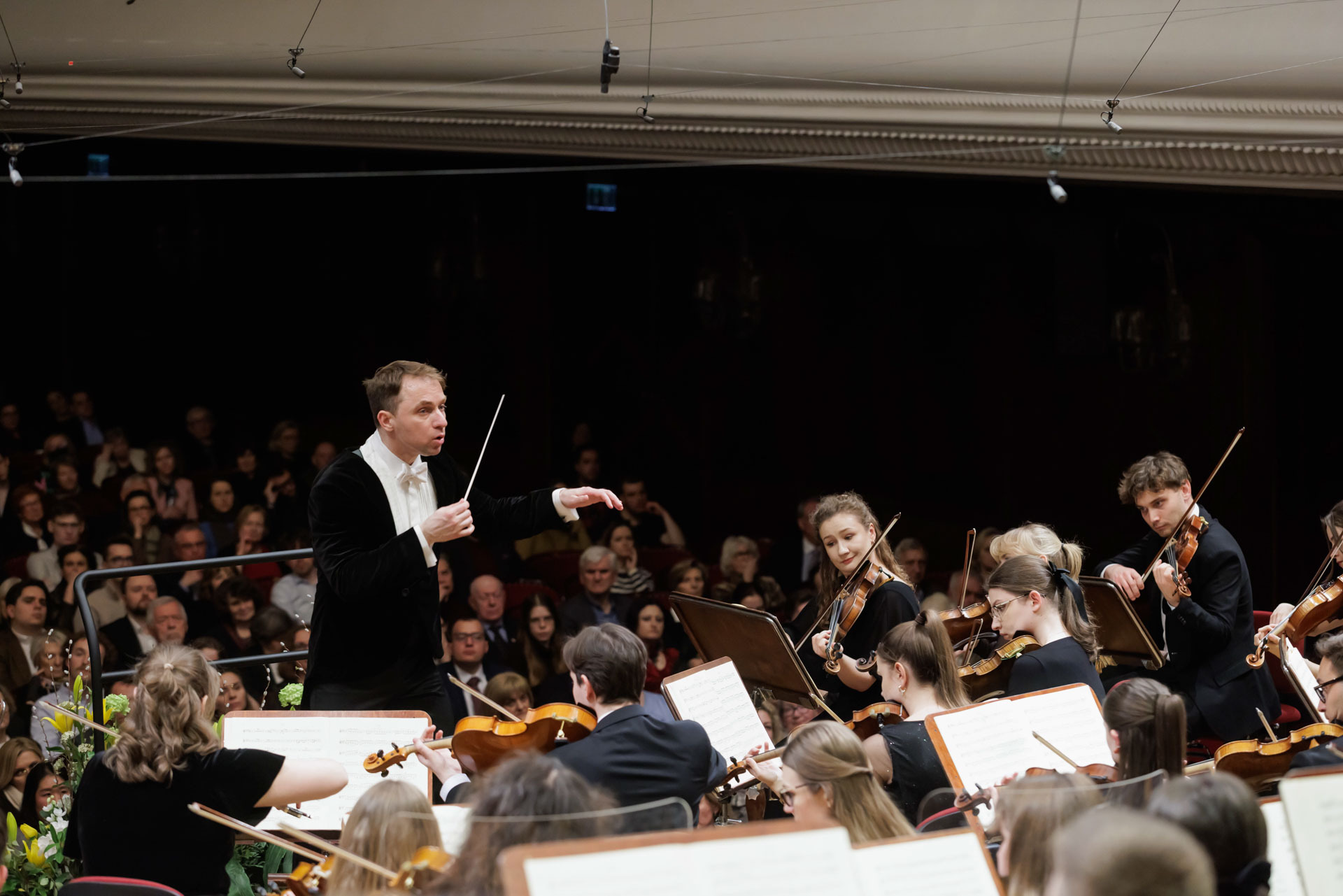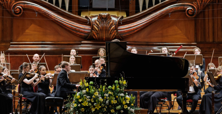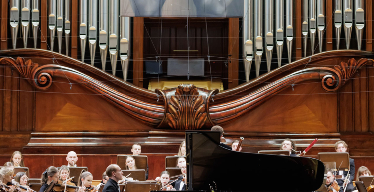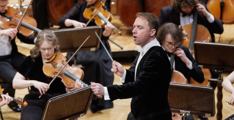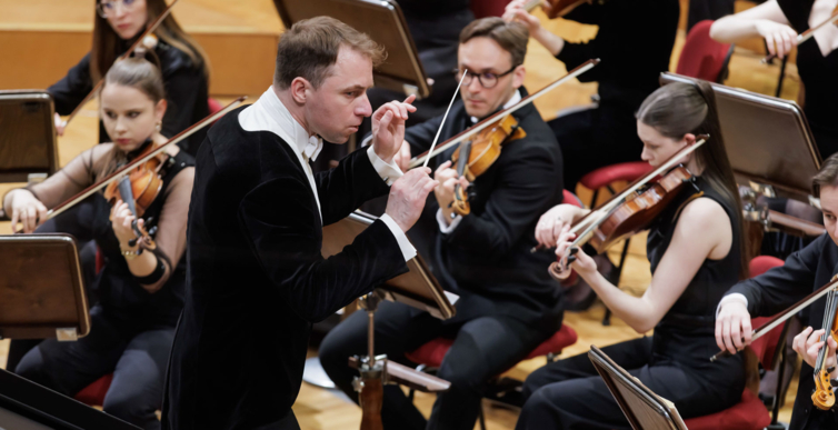We wtorkowy na scenie Filharmonii Narodowej wystąpili Seth Schultheis i Polska Orkiestra Sinfonia Iuventus im. Jerzego Semkowa pod batutą Alexandra Humali.