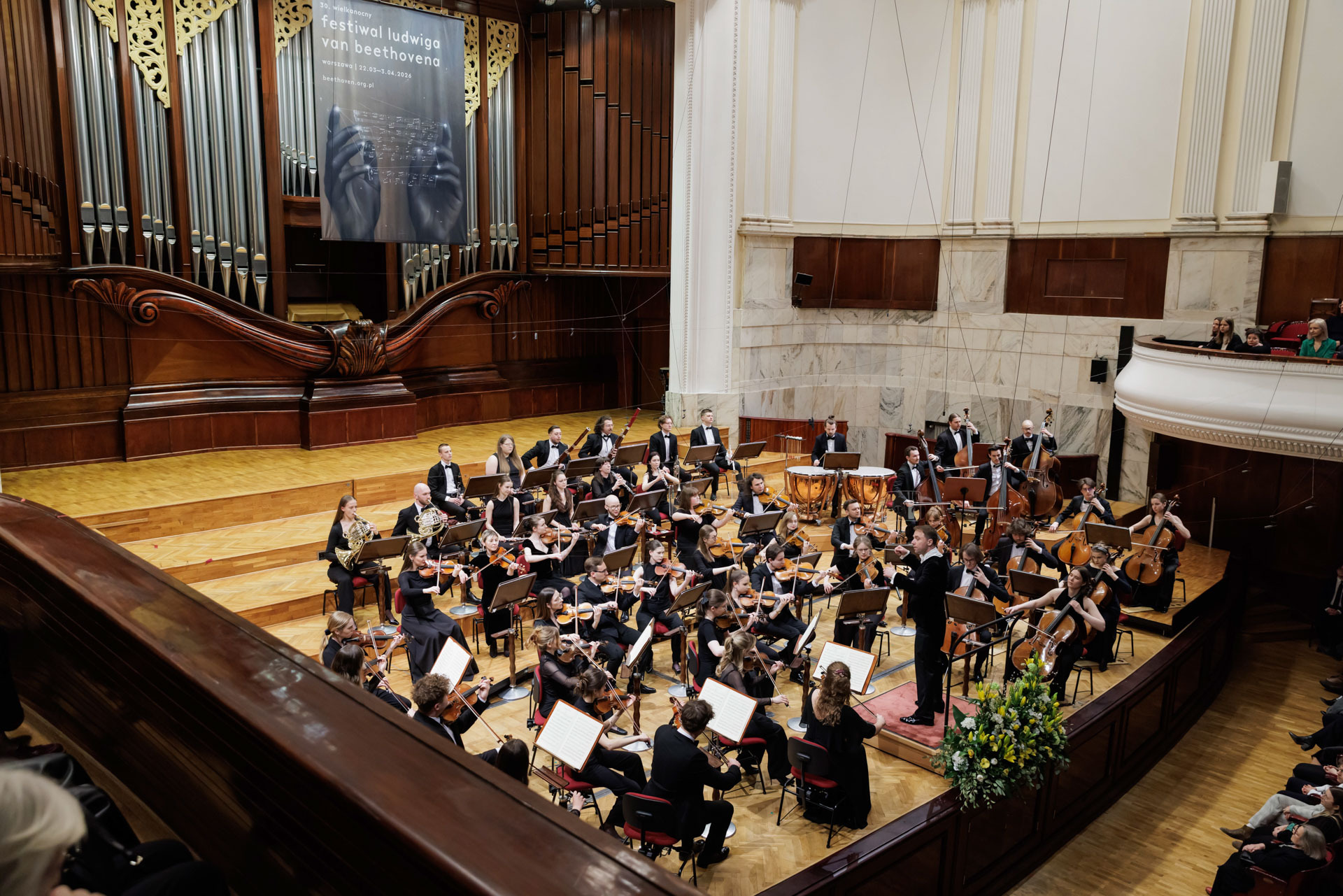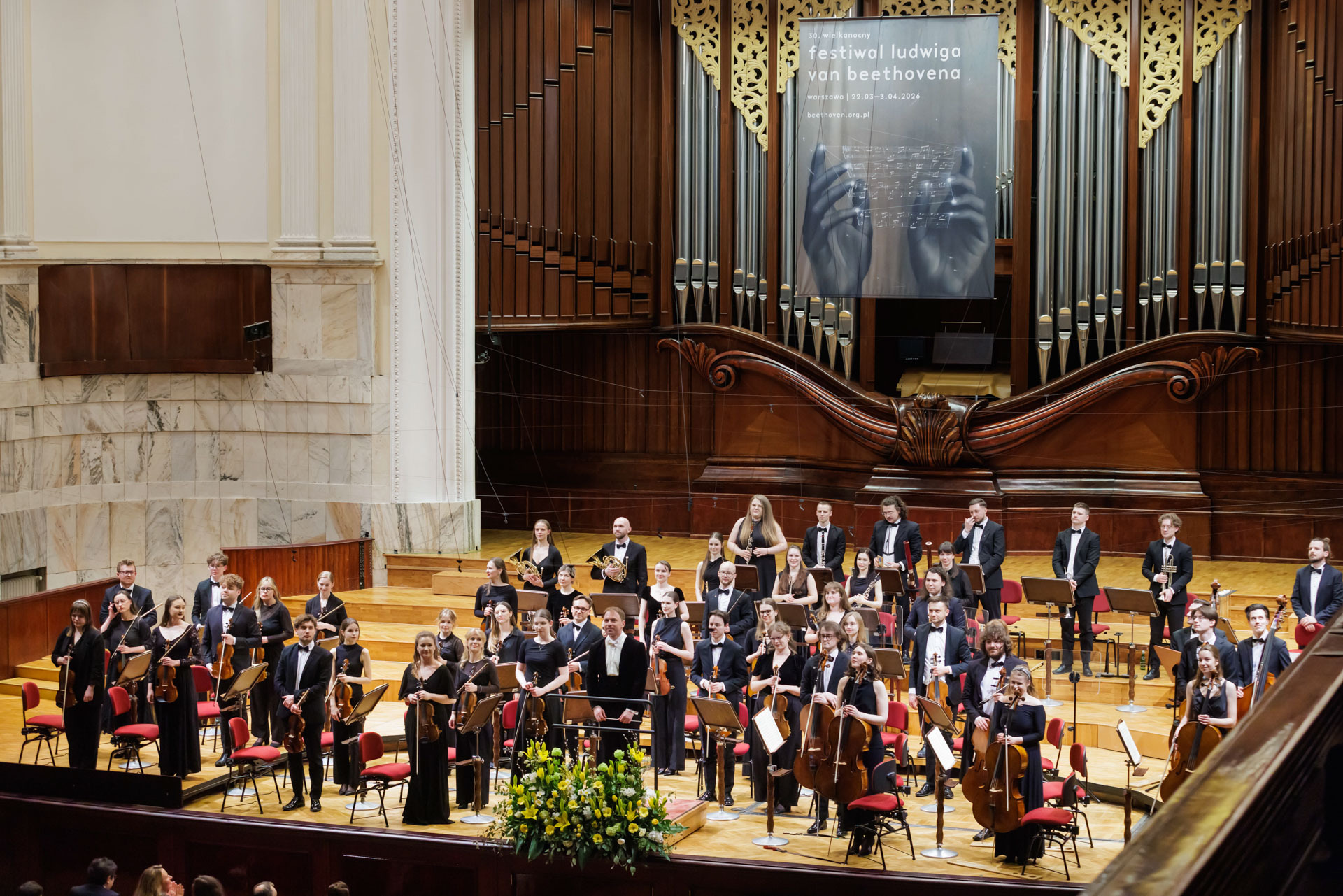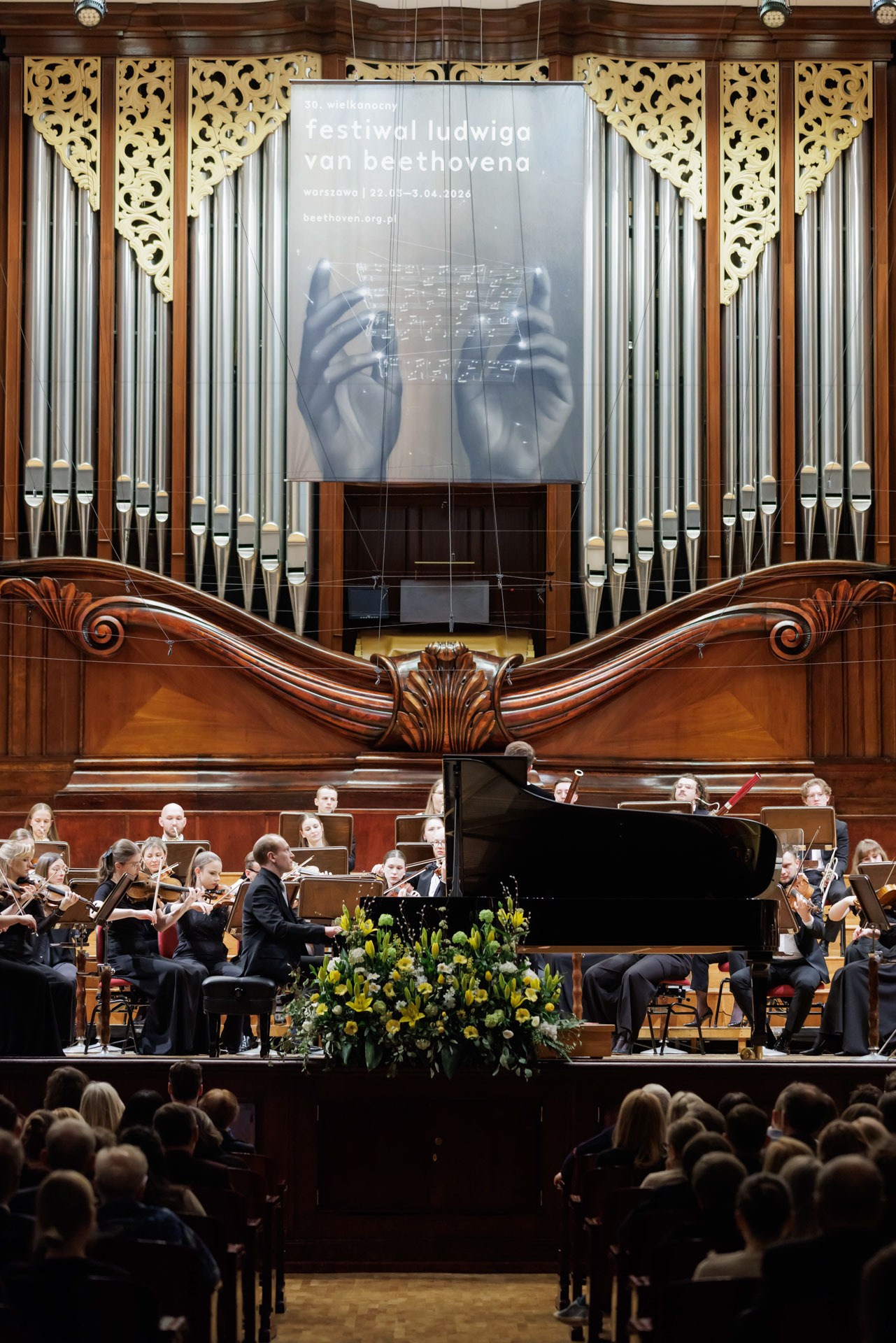 We wtorkowy na scenie Filharmonii Narodowej wystąpili Seth Schultheis i Polska Orkiestra Sinfonia Iuventus im. Jerzego Semkowa pod batutą Alexandra Humali.