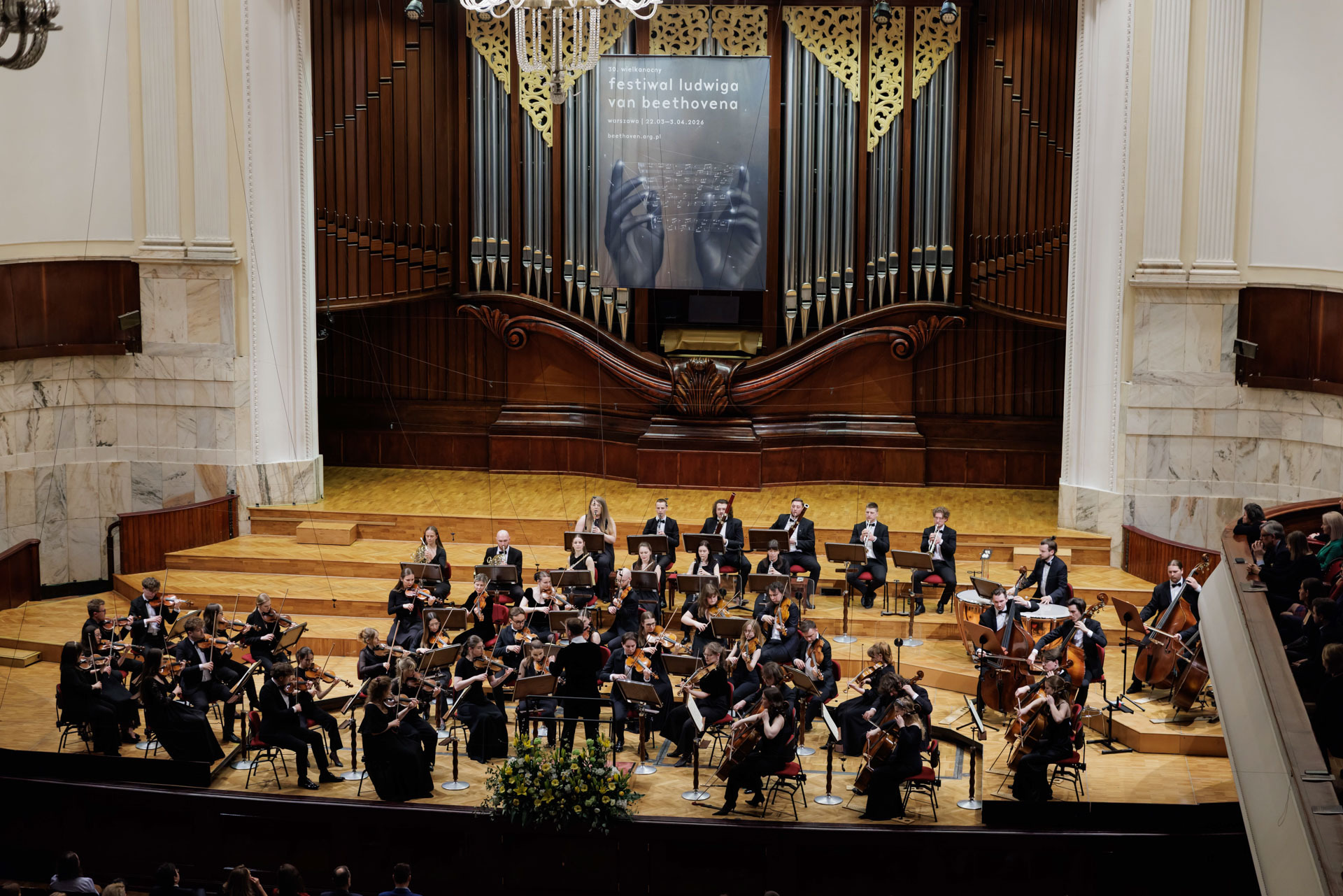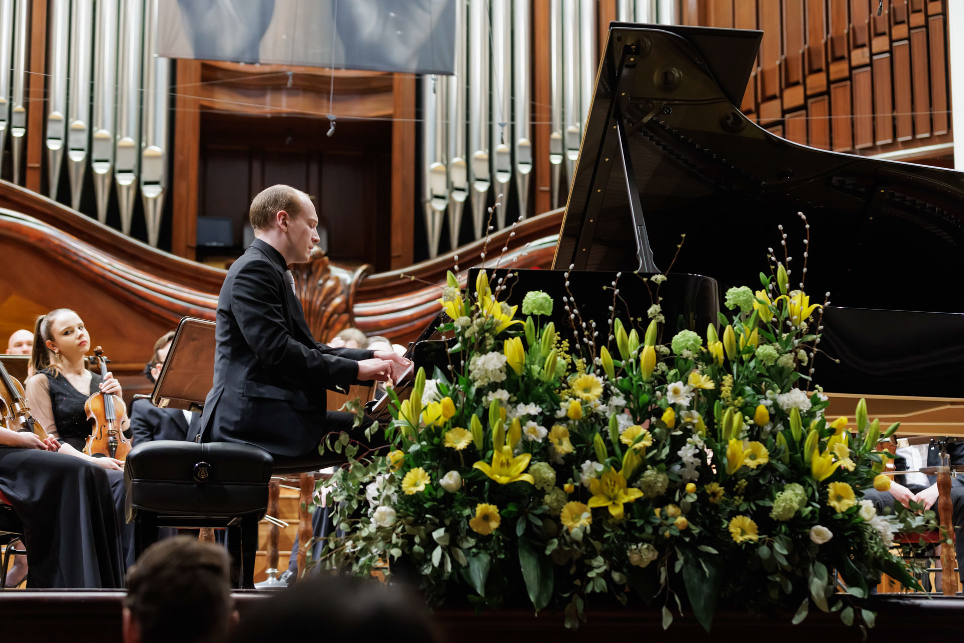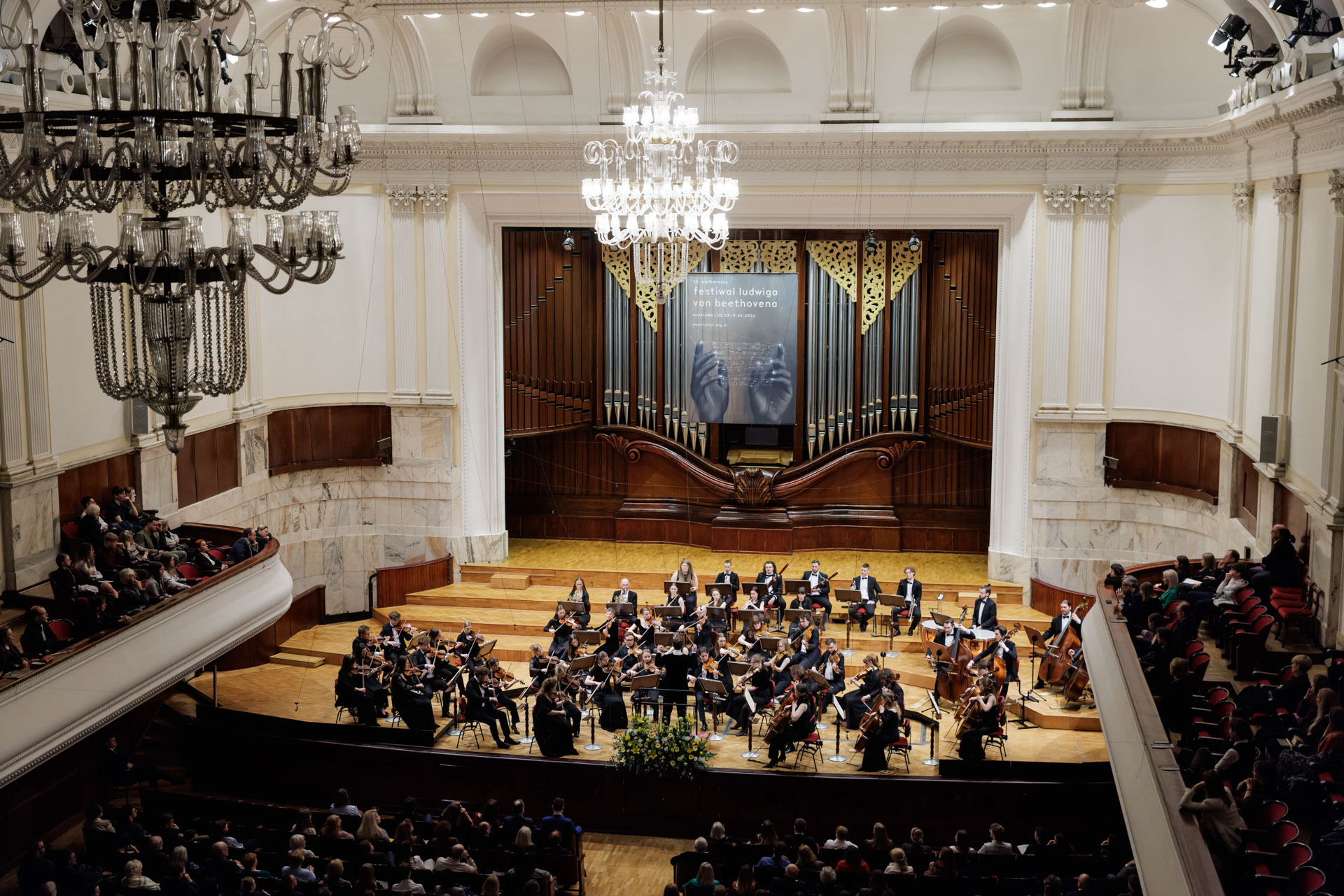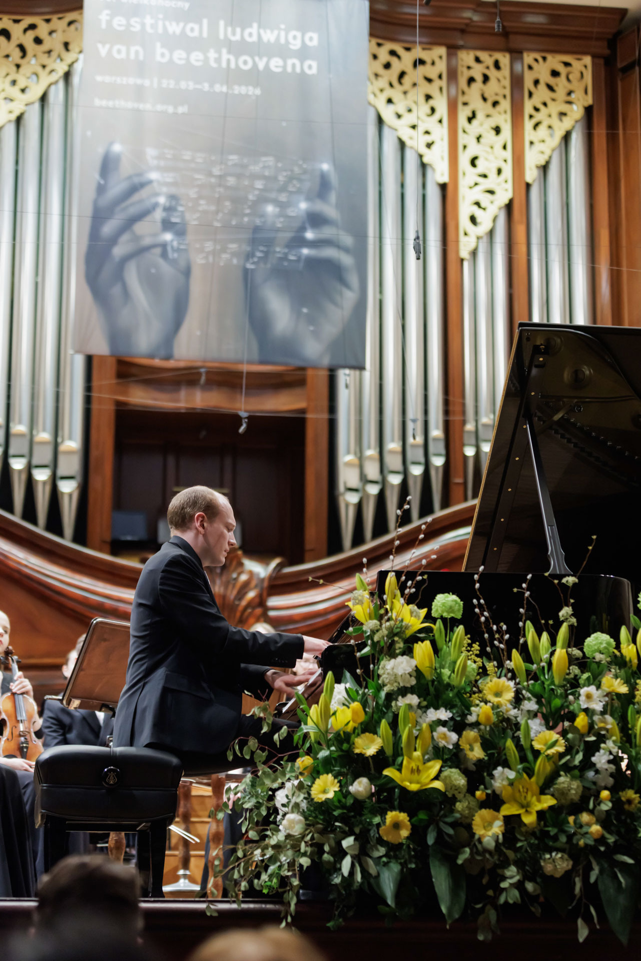 We wtorkowy na scenie Filharmonii Narodowej wystąpili Seth Schultheis i Polska Orkiestra Sinfonia Iuventus im. Jerzego Semkowa pod batutą Alexandra Humali.